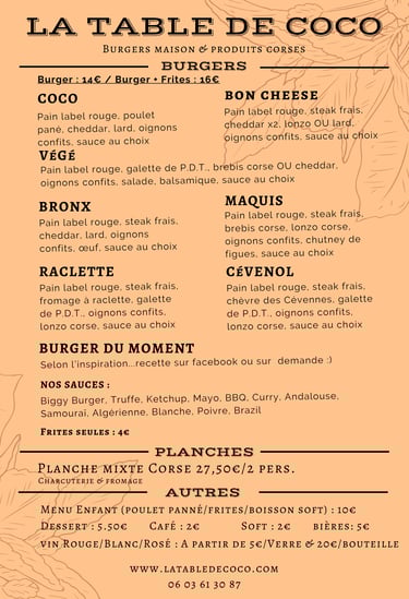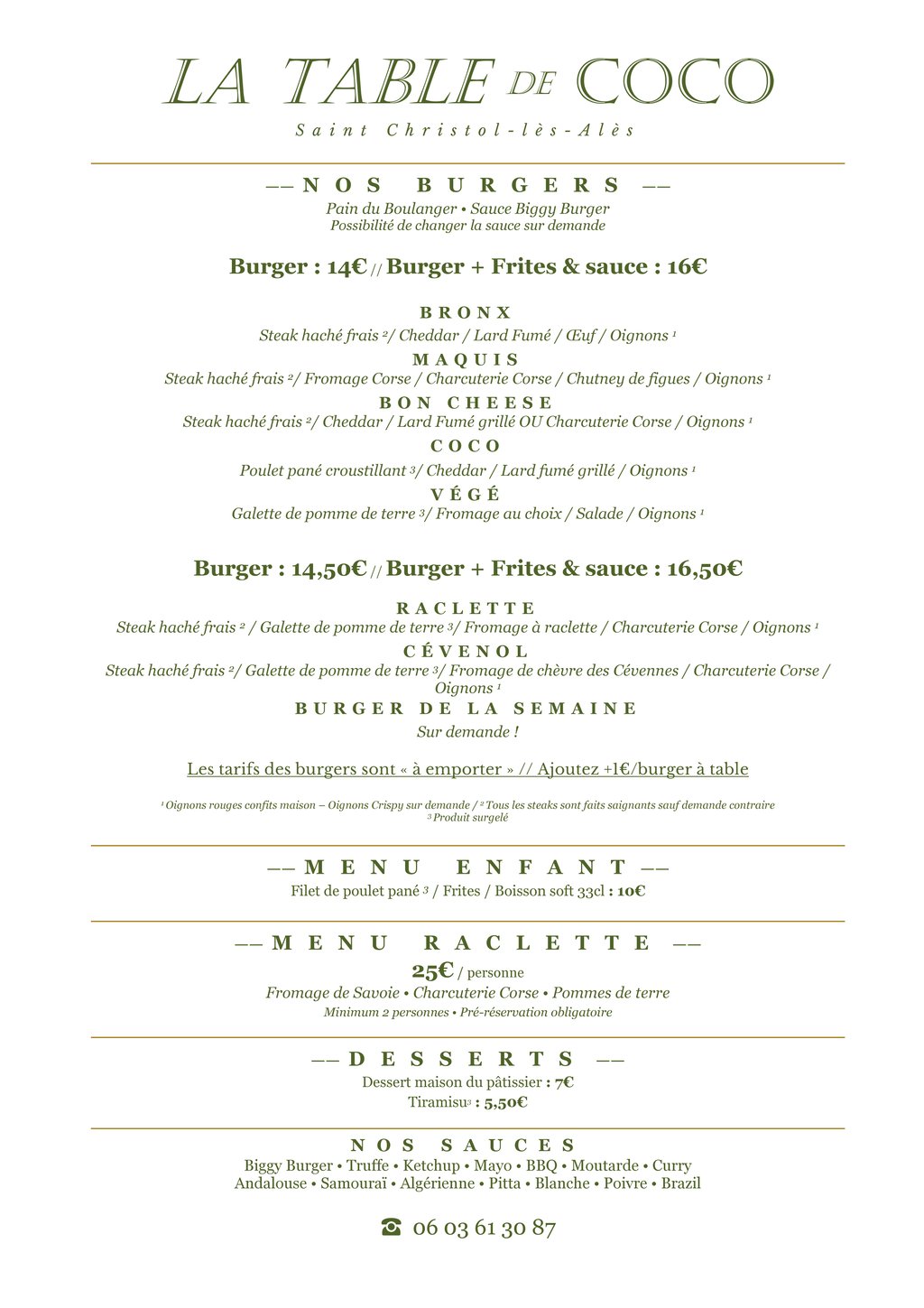 La liste des plats ci-dessous ne sera pas forcément disponible tous les jours.